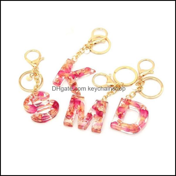 keychains fashion accessories 1pc english letter keychain resin flower red rose petal gold foil filling pendant key chain handbag charms for, Silver
