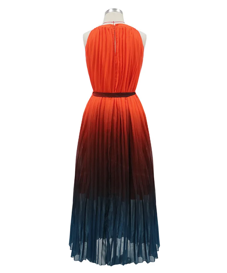 202 summer new gradient big swing skirt round neck sleeveless lace dress dress for women