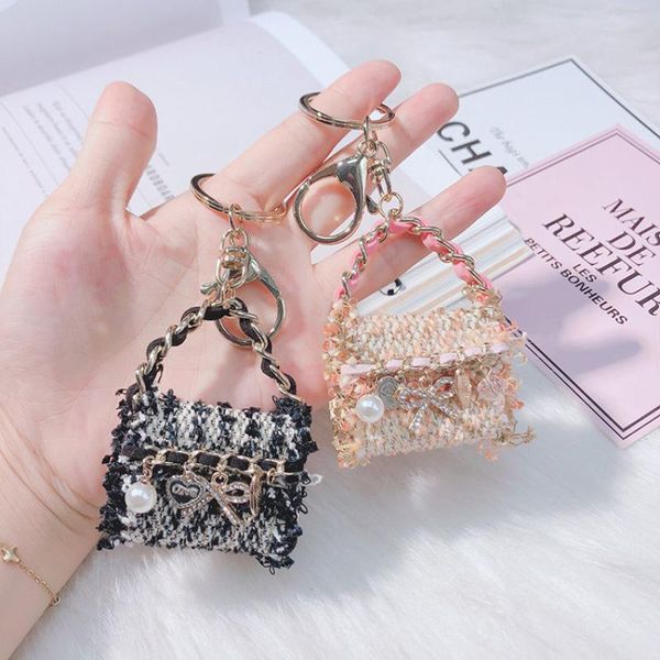 keychains lady chains 2021 luxury bag charm with flower mink pompom tassel pearl key chain diy car/bag holder fashion pendant, Silver