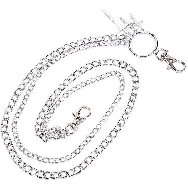 keychains punk long double layer cross waist chain hip hop rock pants metal personality men women bag trinket pendant, Silver