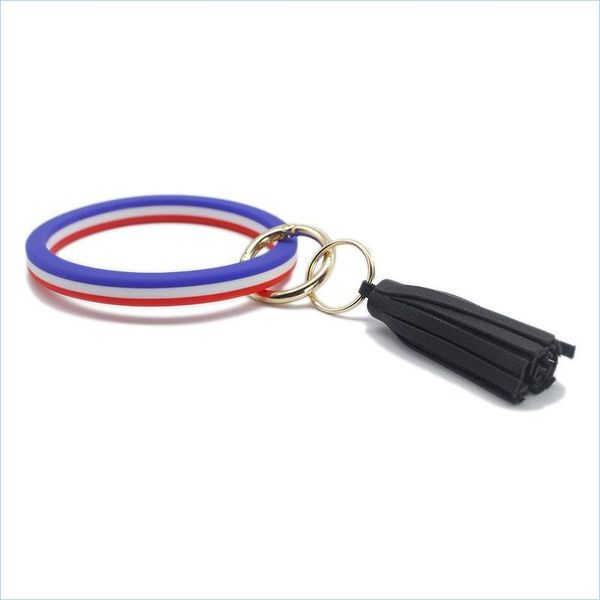 keychains sile bangle bracelet with pu leather tassel circle keyring round key ring chain for women girls drop delivery 20 jewelshops dh4of, Silver