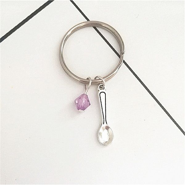 keychains spoon charm keychain with birthstone keyring jewelry, Silver