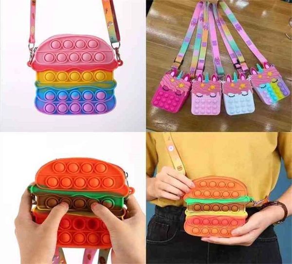 kids hamburger unicorn cartoon fidget chain bag popet bubble toys purses backpack crossbody bags push pop puzzle board boys girls 9571618, White