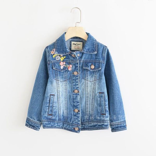 kids jacket 2020 fall children coats baby jeans jacket cotton embroidery flowers girls denim coat sweet children clothes, Blue;gray