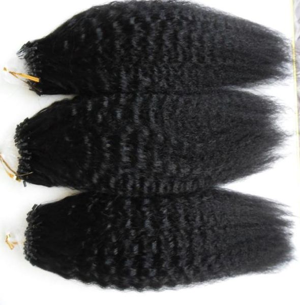 kinky straight micro loop ring human hair extensions 300g 100 human micro bead links remy hair corase yaki pre bonded hair extens8698423, Black