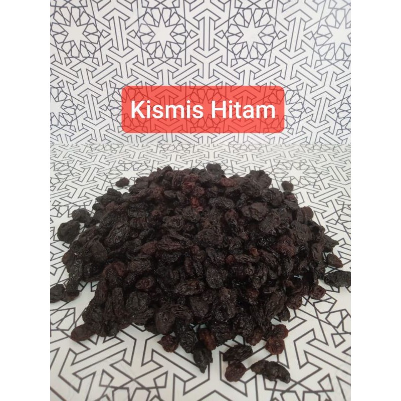 kismis hitam adalah anggur yg dikeringkan...bisa buat toping nasi briani ,kabsah ,kebuli,makan roti dll