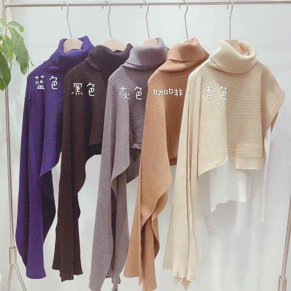 knitted cape shawl for women's wear autumn and winter fashion dual purpose high neck sweater short coat sweaters, White;black