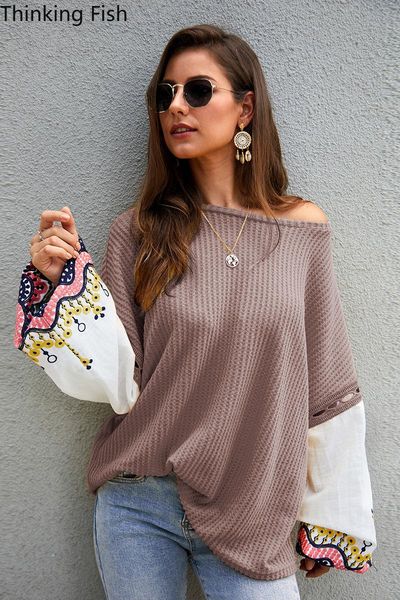 knitting women sweater 2021 autumn winter lantern sleeve knit stitching embroidery lace cute loose round collar sweater women's sweater, White;black