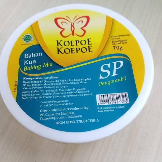 SP Koepoe Koepoe digunakan sebagai pengikat, pelembut, dan juga pengembang kue. Dibuat dari bahan pilihan yang bermutu tinggi untuk kesempurnaan kue anda.