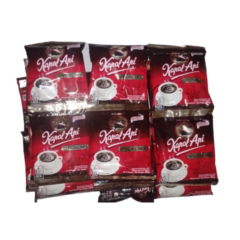 Produk fenomenal trendsetter kopi hitam instan Indonesia: Kapal Api Special Mix. Adalah minuman serbuk kopi + gula yg terbuat dari biji kopi pilhan dan pionir dalam produksi menggunakan mesin2 mutakhir yg menghasilkan kopi siap seduh yg sangat cocok utk penikmat kopi Indonesia. Dikemas dalam kemasan renceng isi 10 sachet dgn netto 25g, produk PT. Santos Jaya Abadi ini merupakan pemimpin pasar di kelasnya di Indonesia. Atribut lengkap BPOM dan MUI. Silahkan di order.
