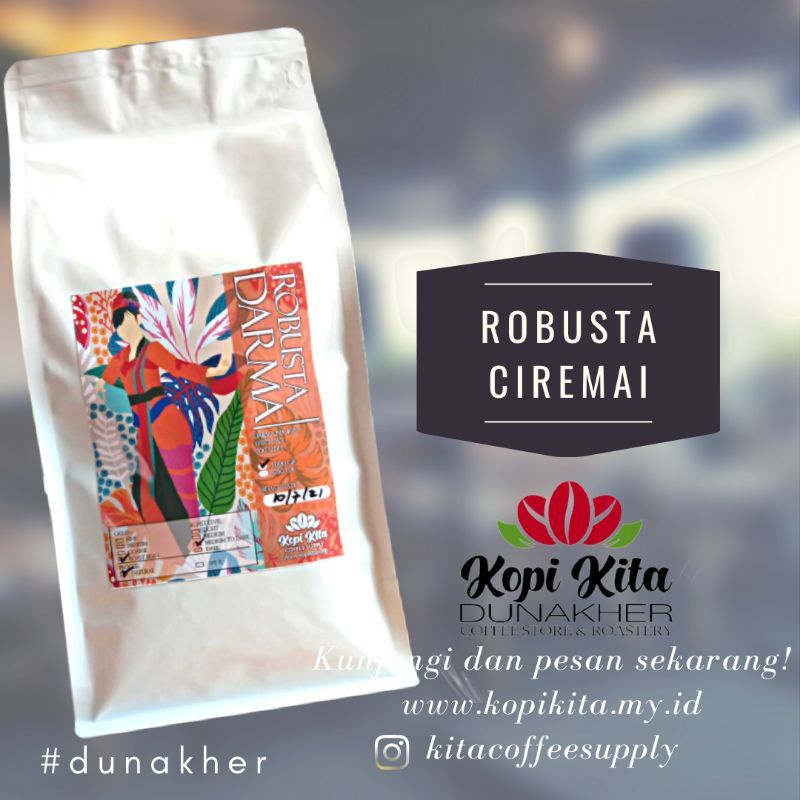 Kopi Robusta asli dari lereng Ciremai origin Darma - Kuningan dengan ketinggian sekitar 1200Mdpl lebih. Tentunya dengan Kopi pilihan yang di petik merah dan di sortisasi secara ketat, di proses dengan menggunakan mesin modern dan tenaga profesional yang tidak merubah kualitas dari biji kopinya. Membuat kopi ini menjadi idola bagi penikmat kopi.