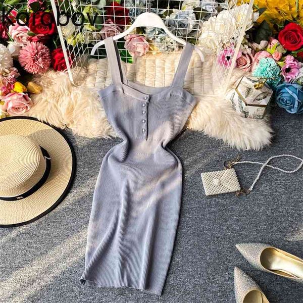 korobov backless women knitted dress summer off shoulder spaghetti strap female dresses elegant party night vestidos 210430, Black;gray