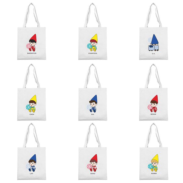 kpop exo милый мультфильм печати холст сумка сумка k-baekhyun kai chen chanyeol сумка для хранения покупок вентилятор коллекция