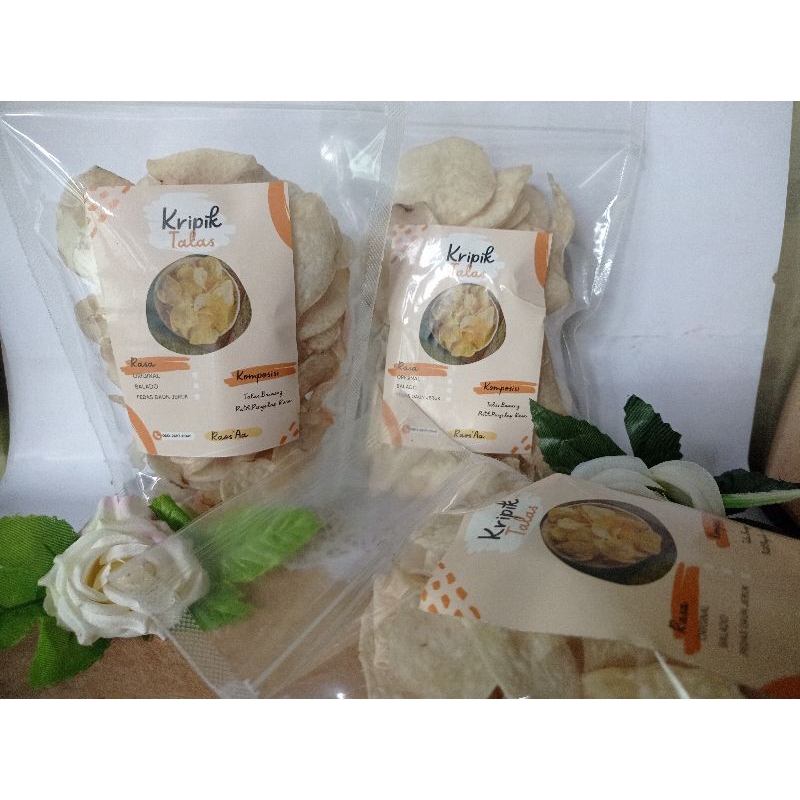 kripik talas yang di buat dari Talas pilihan yang tidak membuat alergi saat di santap.