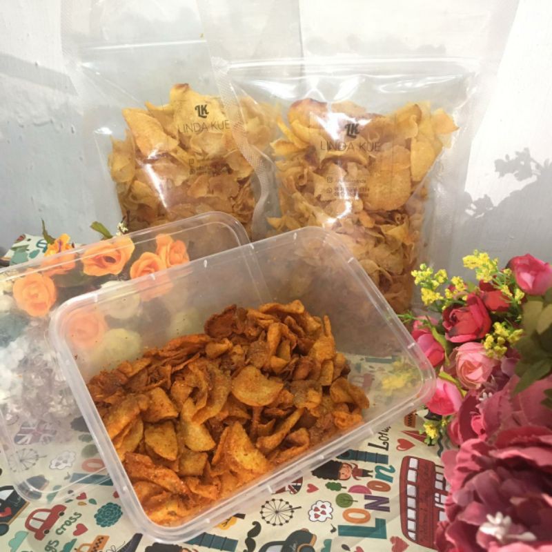 keripik kentang ada 2 rasa yaitu (keripik kentang pedas dan keripik kentang bawang) berat 160g