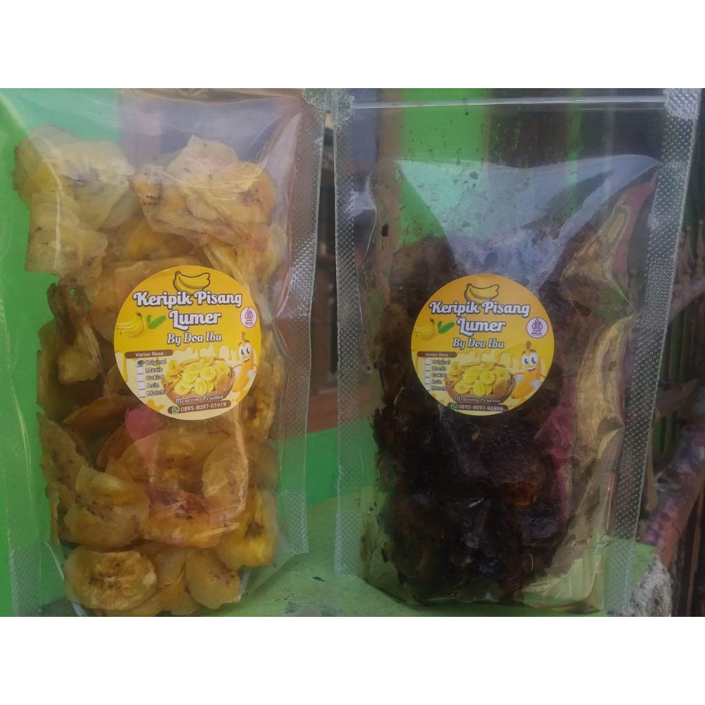 cemilan kripik pisang lumer varian rasa coklat maca manis asin original