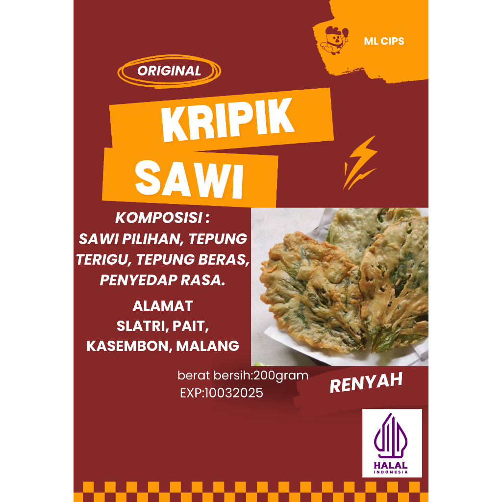 kripik sawi ini terbuat dari sawi pilahan yang terjamin kesegarannya, di olah dengan penuh ketelatenan agar tetap higenis, di kemas dengan baik, bertahan sampai 5 bulan.