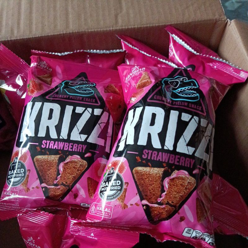 KRIZZI! Snack isi cream dengan rasa Mocha yang renyah dan lezat. Mengandung susu dan tepung gandum. Cemilan ini pun bebas dimakan tanpa merasa bersalah, karena snack ini dipanggang bukan digoreng.