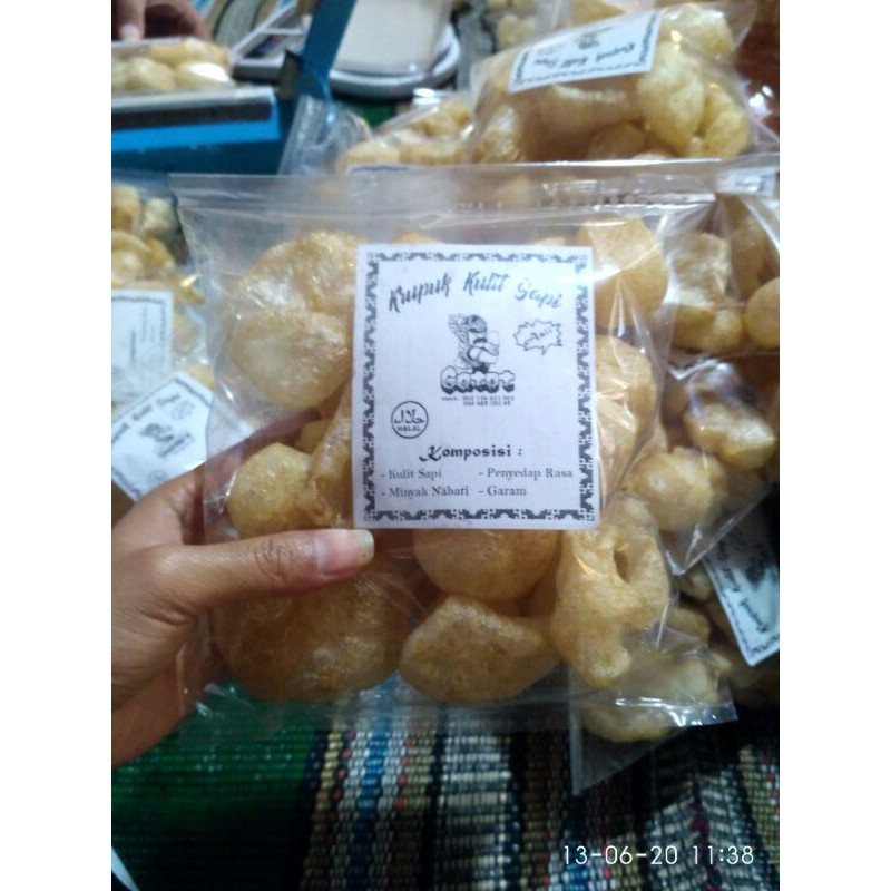 krupuk kulit yang terbiat dari kulit sapi asli tanpa pengawet