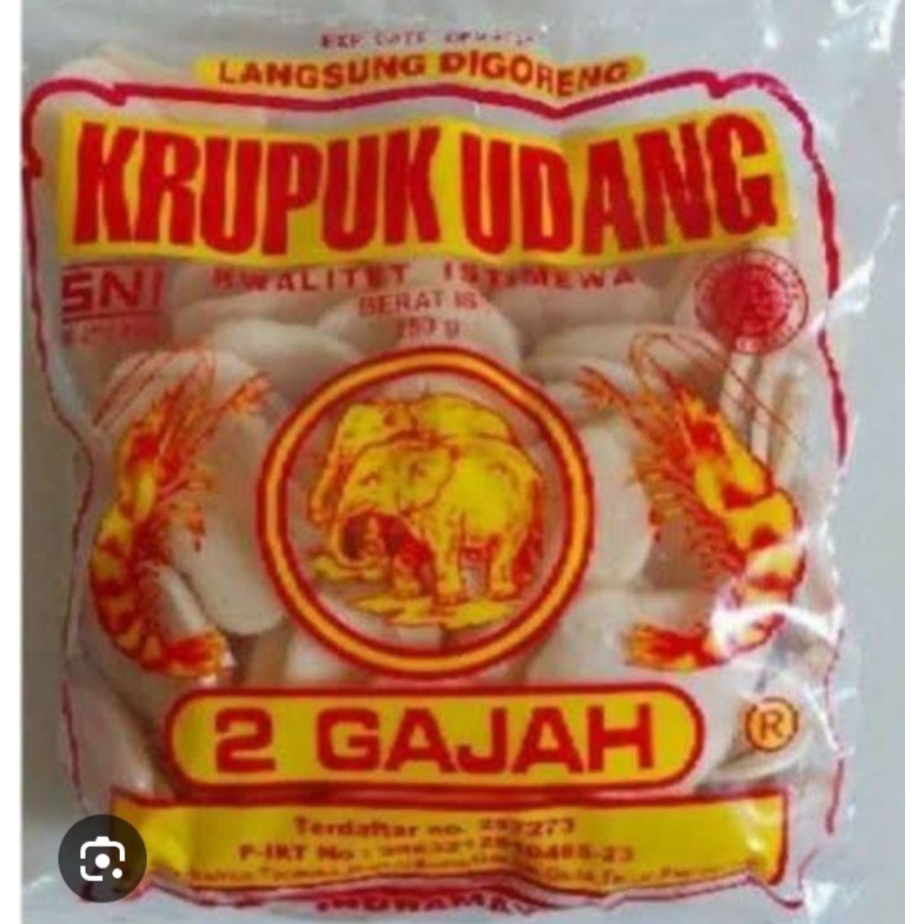 krupuk udang mentah 2 Gajah (250gram) adalah kerupuk udang berkualitas tinggi yg siap untuk digoreng .