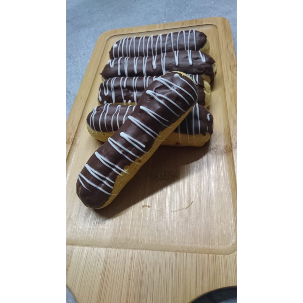 Eclair isian vla no rhum. eclairnya enak banget sekali coba pasti mau lagi.. cocok buat hantaran atau suguhan saat ada acara keluarga,arisan dlll.