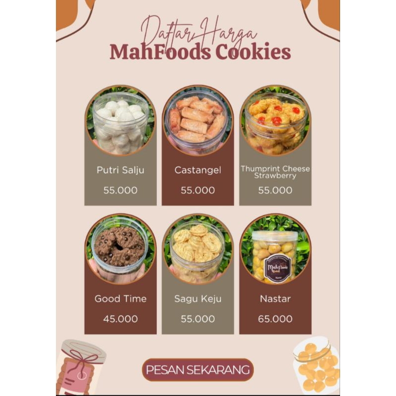 Untuk pembuatan kue kering dibuat h+1 pemesanan, dan akan dikirim sesuai hari pemesanan
