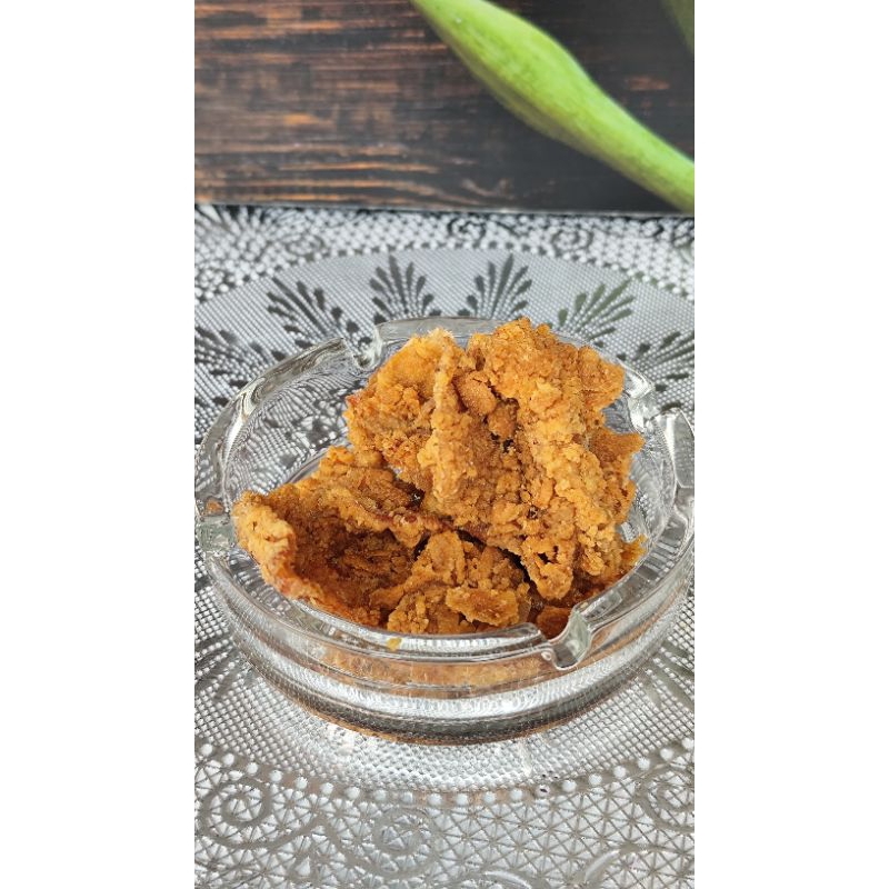 bagian kulit ayam yang di proses dan di goreng untuk bagian makanan kulit crispy juga bisa buat menjadi tambahan makanan.