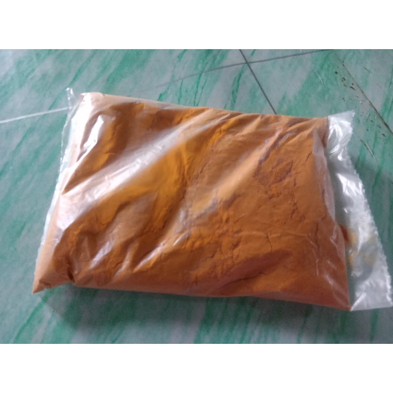 terbuat dri umbi kunyit yg di keringkan dan di giling sampai halus