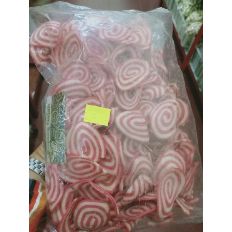 kuping gajah warna, rasanya renyah dan manis, ready varian pandan dan strawberry