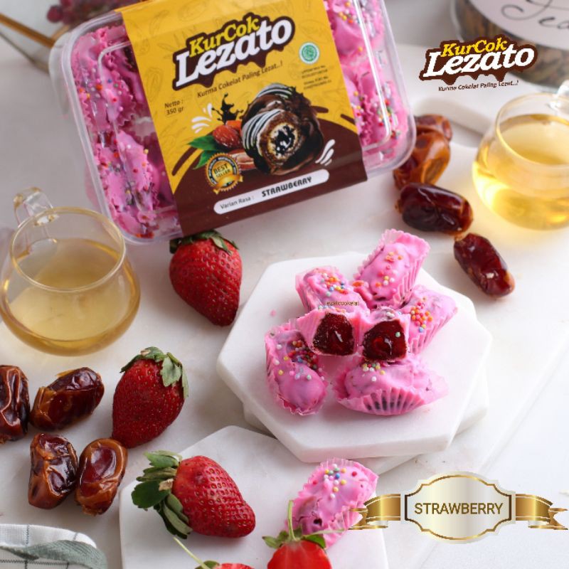 Nikmati paduan manisnya kurma, asam segar selai strawberry, dan kelezatan cokelat rasa strawberry yang pas banget di Kurma Cokelat Strawberry Lezato.
