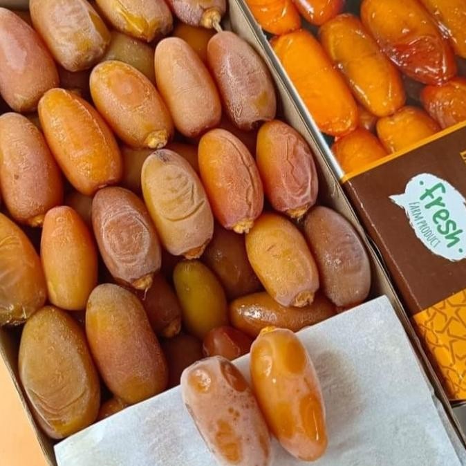 Kurma Ruthob Libya adalah kurma yang berasal dari afrika utara atau tepatnya Libya, didaerah asalnya dikenal dgn nama Deglet, kurma jenis ini merupakan kurma unggulan negara libyaDengan rasa manis yang mendominasi dan tekstur yang renyah seperti buah kurma muda yang baru dipetik dari pohonnyaSaran penyimpanan frezeer beku pada suhu -20°C