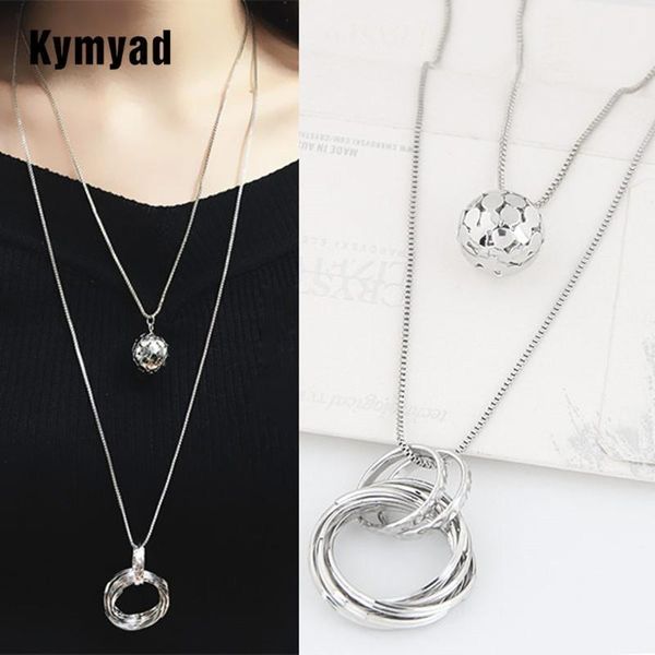 kymyad korean multi layer necklace women round circle necklaces & pendants maxi statement necklace collares womens jewelry1, Silver