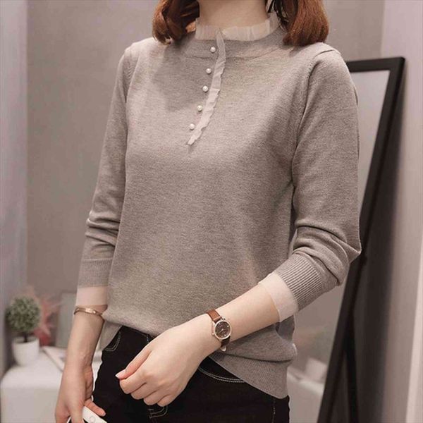 lace trim knitted women autumn womens sweater winter jumpers oversize ladies pullover loose bead korean style plus size knitwear, White;black