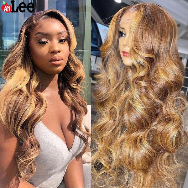 lace wigs highlights blonde 13x4 frontal wig body wave peruvian human hair closure preplucked for women natural hairline, Black;brown
