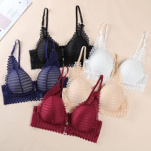 lace wireless front closure bras for women lingerie comfort push up bra adjusted underwear backless bralette, Red;black