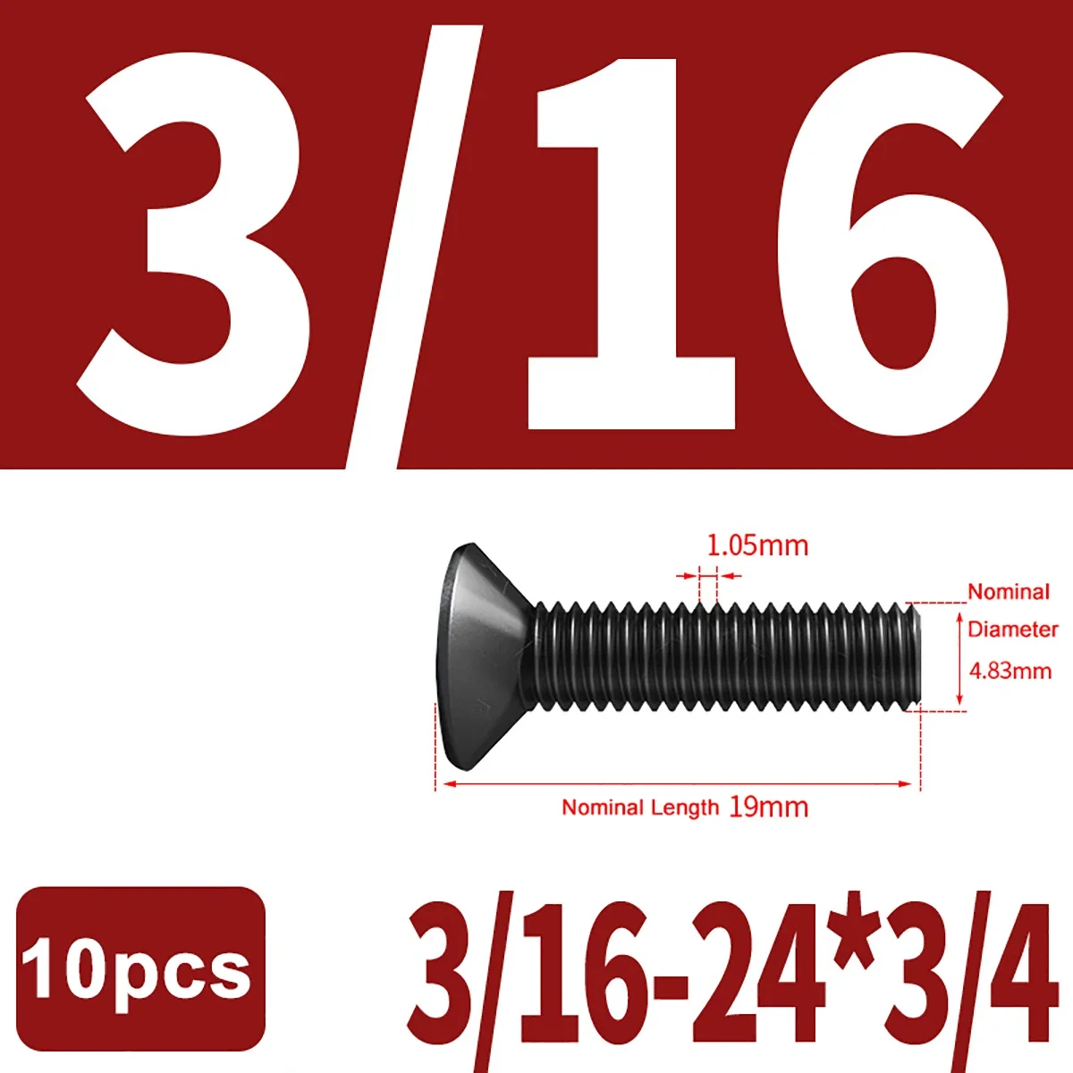 10 шт. BSW резьба 3/16-24 класса 10,9, высокопрочные стальные болты с потайной головкой, винты с шестигранной головкой, длина от 3/8 до 1-1/2 дюйма