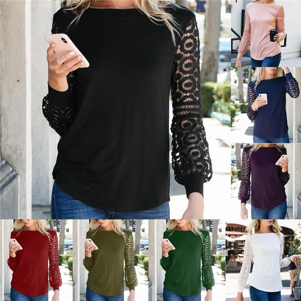 ladies clothing hollow out casual plus size women designer tshirts lace patchwork t shirts womens slash neck puff sleeve, White