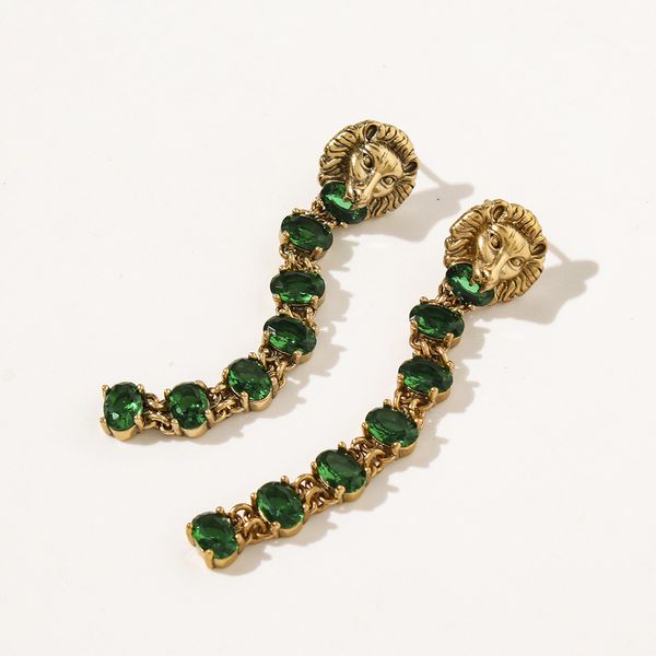 ladies fashion jewelry ancient family double long earrings temperament net red lion head earrings female, Golden