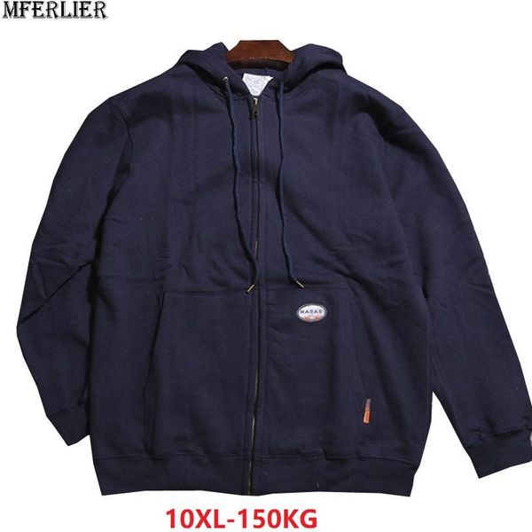 large size 9xl 10xl autumn men hooded fleece winter sports sweatshirt warm jackets zipper 8xl hoodies oversize coat 150kg 60 62, Black