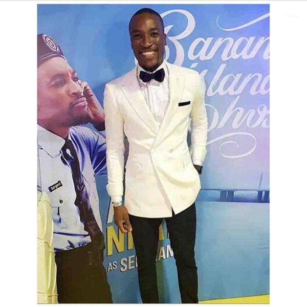 latest coat double breasted ivory groom men suit tuxedo groomsmen slim wedding party dinner mens suits 2020 (jacket+pants)1, White;black