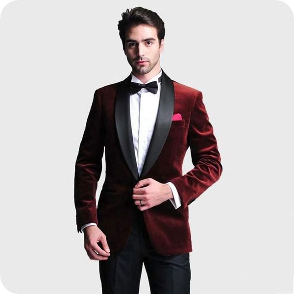latest design one button dark red velvet groom tuxedos shawl lapel men suits 2 pieces wedding/prom/dinner blazer (jacket+pants+tie) w719, Black;gray