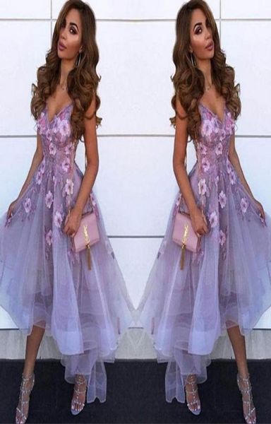 lavender v neck tulle a line homecoming dresses arabic lace applique high low princess short prom party graduation dresses8515734, Blue;pink