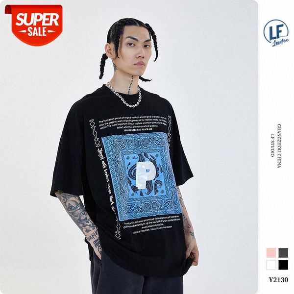 lawfoo national men's clothing p-curse print printing loose short-sleeved t-shirt tee #ru0f, White;black