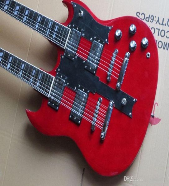 led zeppeli page 1275 double neck signed aged red body 6 string 12 strings guitar6646484