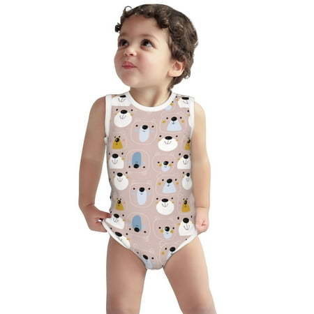 Vsdgher Cute Hand Drawn Bear Print Baby Unisex Baby Cotton Sleeveless Bodysuits Soft and velvety comfortable and breathable