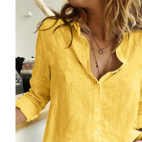 leisure white yellow button lapel womens shirts cardigan loose long sleeve oversized shirt blouses spring blusas mujer