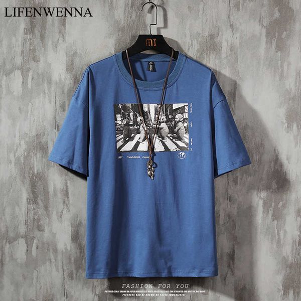 lifenwenna fashion men's summer t shirt streetwear print t-shirt harajuku hip hop t shirts male short sleeve skateboard tee 210528, White;black
