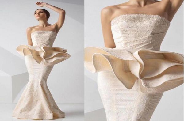 light champagne lace mermaid evening dresses mnm couture shiny beaded rufflels peplum strapless celebrity prom party gown6332363, Black;red