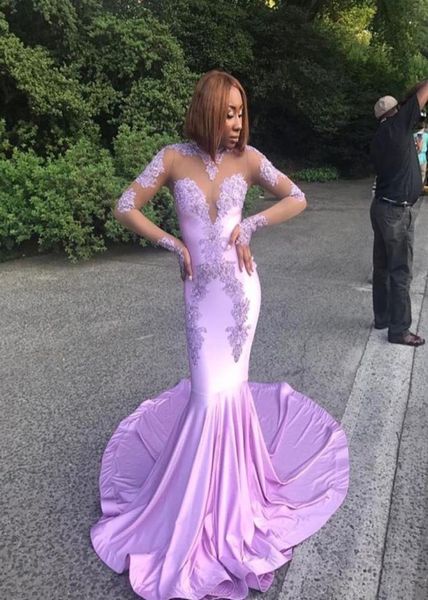 light purple mermaid prom dresses 2018 new long sleeve sweep strain illusion high neck formal evening dress party gowns custom mad4978103, Black