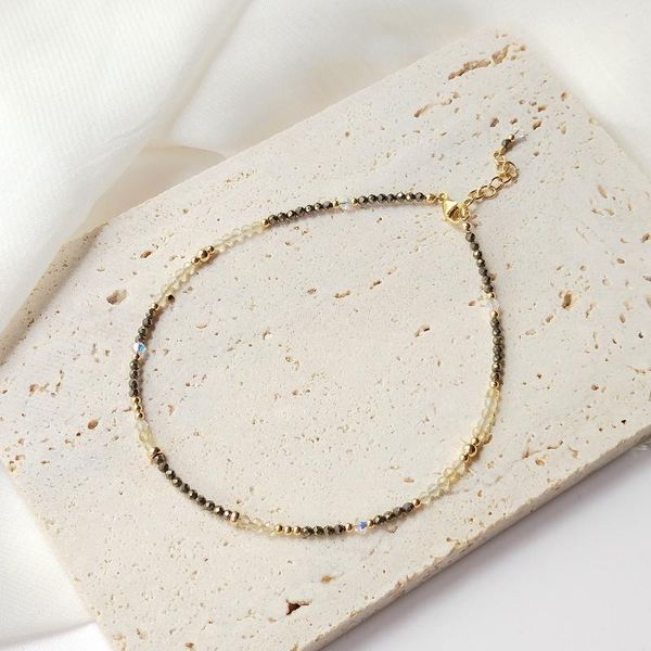 lii ji citrine pyrite 14k gold filled anklet 24+3cm natural stone 2mm beads handmade jewelry for women gift anklets, Red;blue